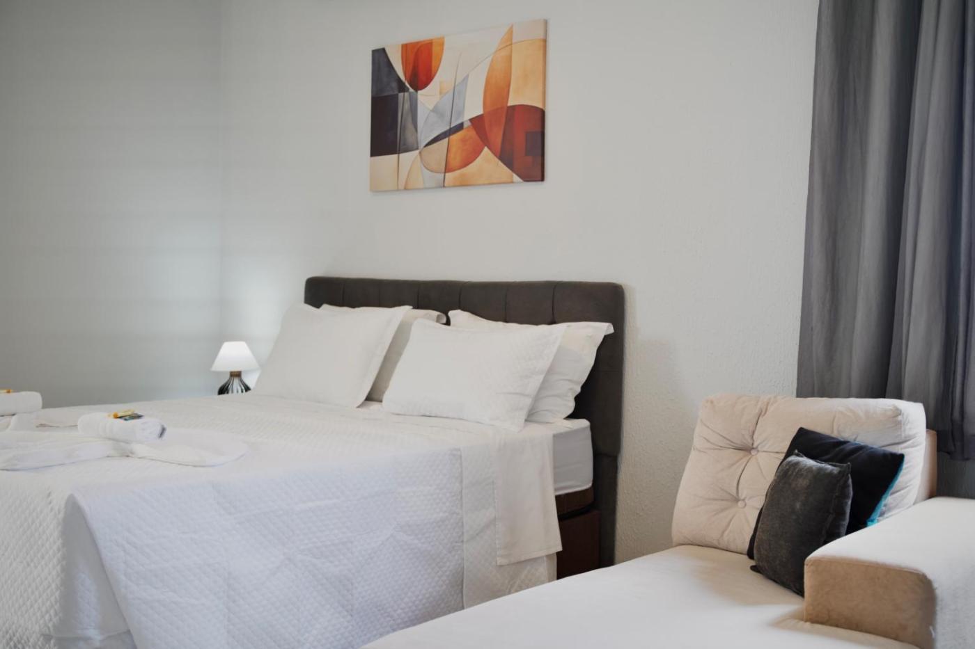 Quarto Triplo Luxo. O quarto triplo está equipado com ar condicionado. A unidade dispõe de 3 camas.