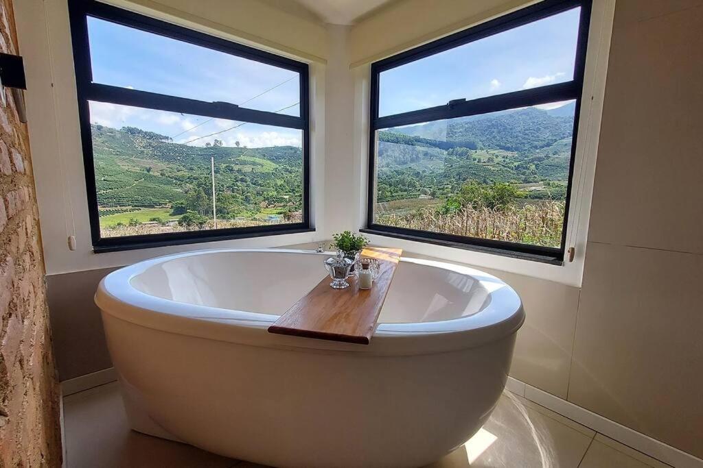 Monte Paraíso - banheira e vista da Pedra Menina tem vista do jardim, acesso Wi-Fi gratuito e estacionamento privado gratuito em Espera Feliz.