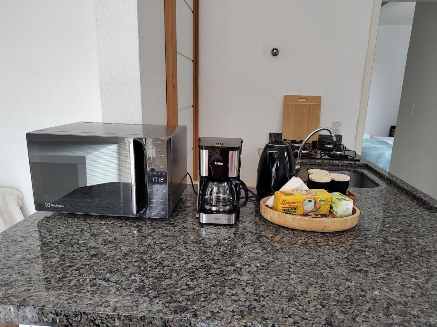 Apartamento com 1 Quarto. Guests can make meals in the kitchen that has a refrigerator, kitchenware, a microwave and a toaster. A seating area with a flat-screen TV, a tea and coffee maker and a balcony are available in this apartment. The unit has 1 bed.