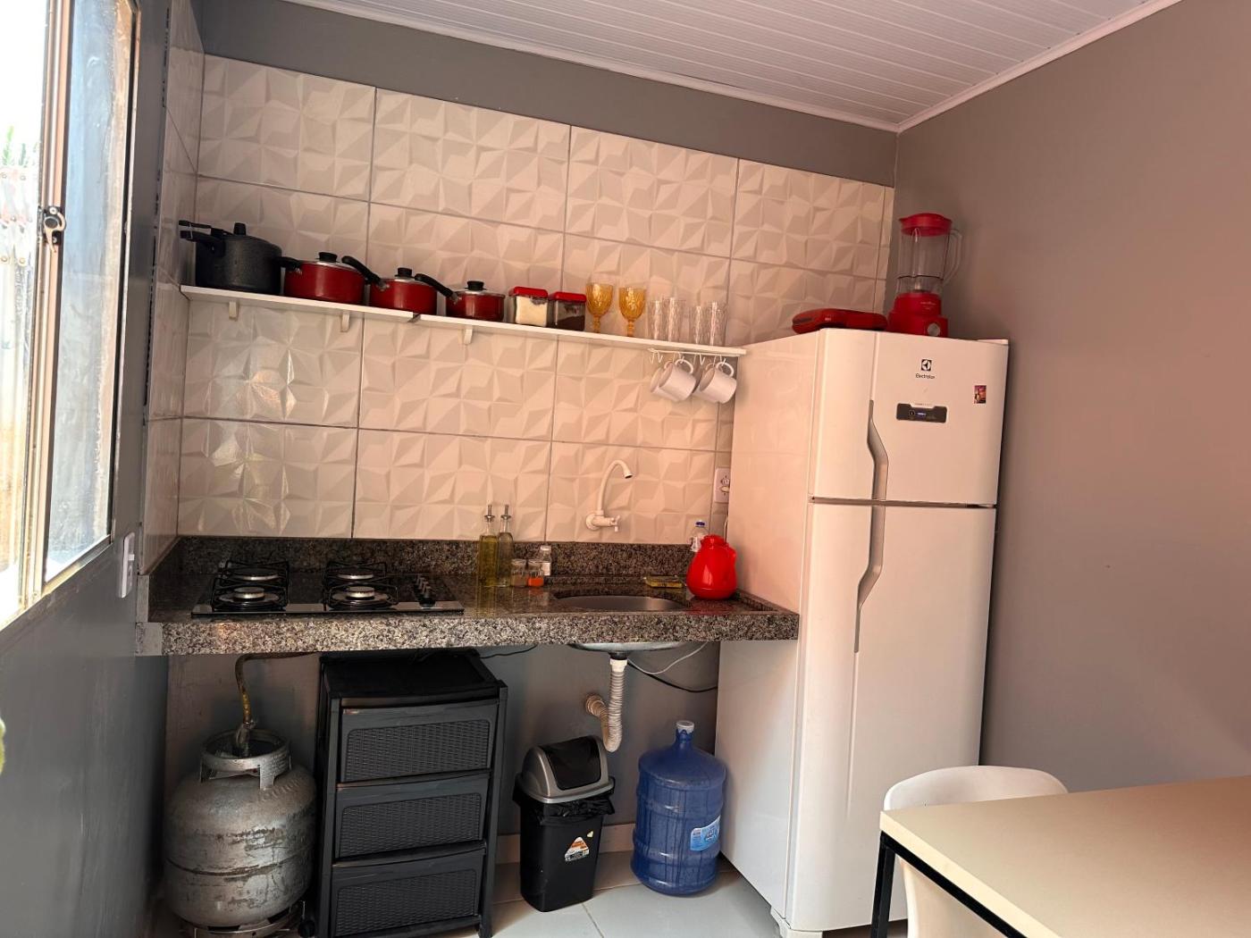 Apartamento - Piso Térreo. Featuring a private entrance, this air-conditioned apartment consists of 1 living room, 2 separate bedrooms and 1 bathroom with a shower. In the well-equipped kitchen, guests will find a stovetop, a refrigerator, kitchenware and a toaster. The apartment provides a flat-screen TV with streaming services, a dining area, a wardrobe, a tiled floor as well as garden views. The unit offers 2 beds.