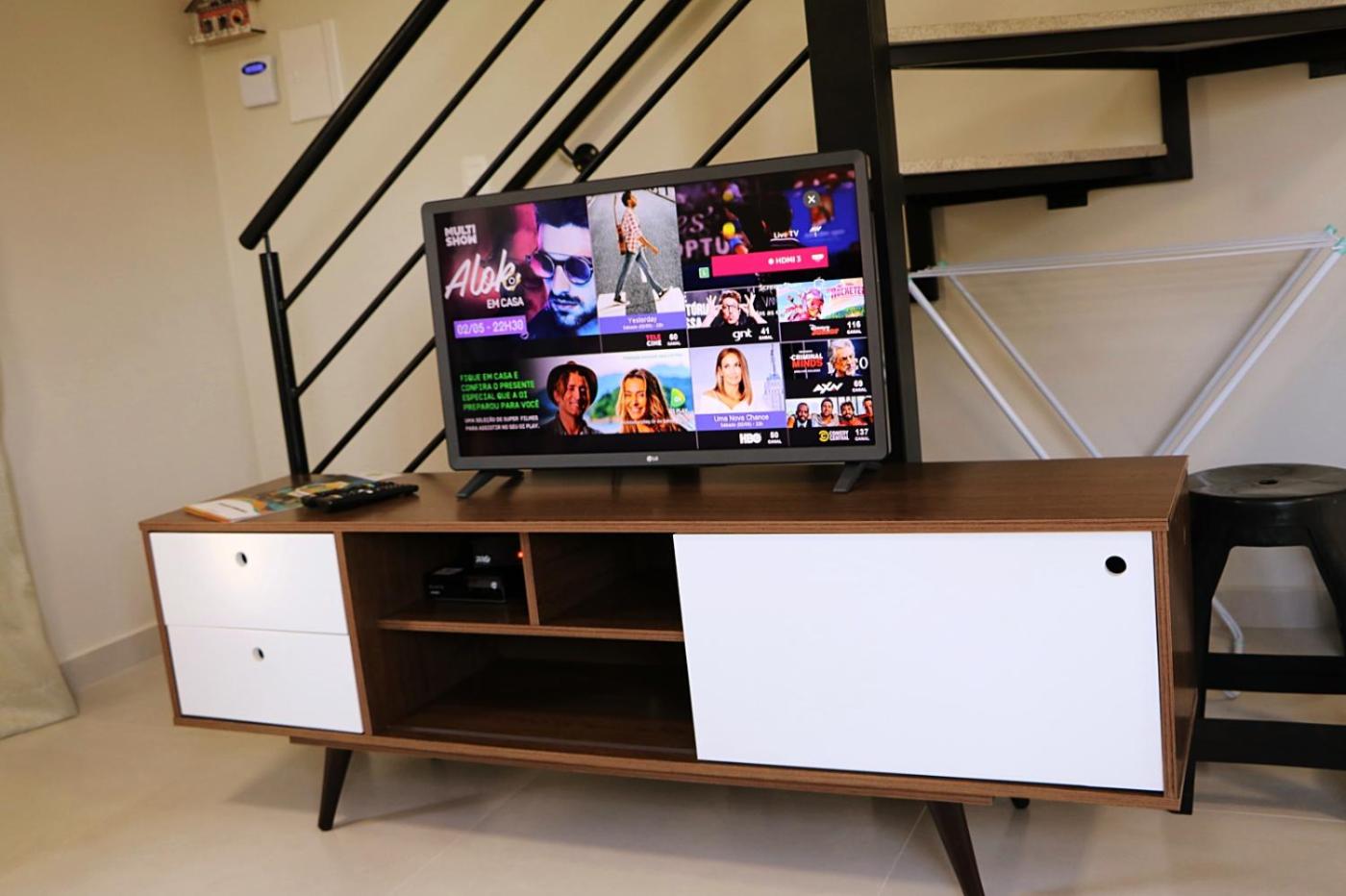 Chalé. Featuring a private entrance, this air-conditioned chalet comprises 1 living room, 2 separate bedrooms and 1 bathroom with a shower and a bidet. Meals can be prepared in the kitchen, which comes with a stovetop, a refrigerator, kitchenware and an oven. Boasting a balcony with garden views, this chalet also provides a tea and coffee maker and a flat-screen TV with streaming services. The unit offers 3 beds. ;
