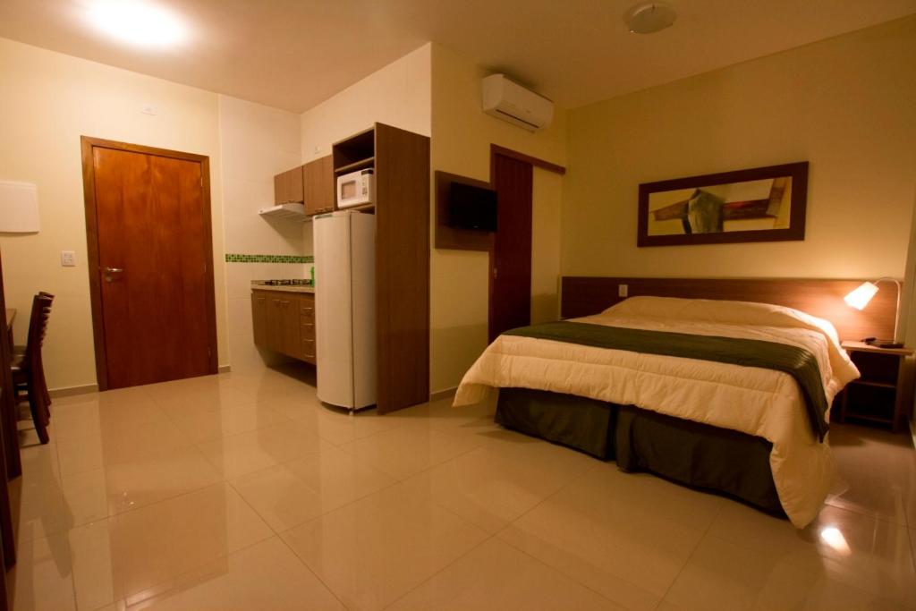 Quarto Standard. Providing free toiletries, this double room includes a private bathroom with a shower. In the well-equipped kitchenette, guests will find a stovetop, a refrigerator, kitchenware and a microwave. The air-conditioned double room provides a flat-screen TV, a wardrobe, a safe deposit box, a tiled floor as well as city views. The unit offers 2 beds. ;