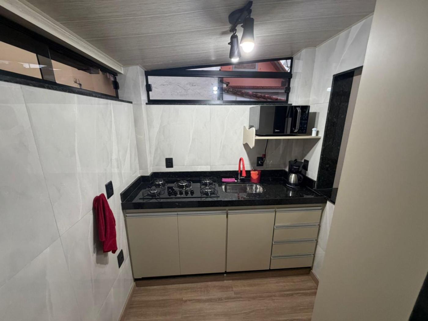 Apartamento com 1 Quarto. The well-equipped kitchen has a stovetop, a refrigerator, kitchenware and a microwave. The air-conditioned apartment features a flat-screen TV, a washing machine, a private entrance, a tea and coffee maker as well as a quiet street view. The unit has 1 bed.