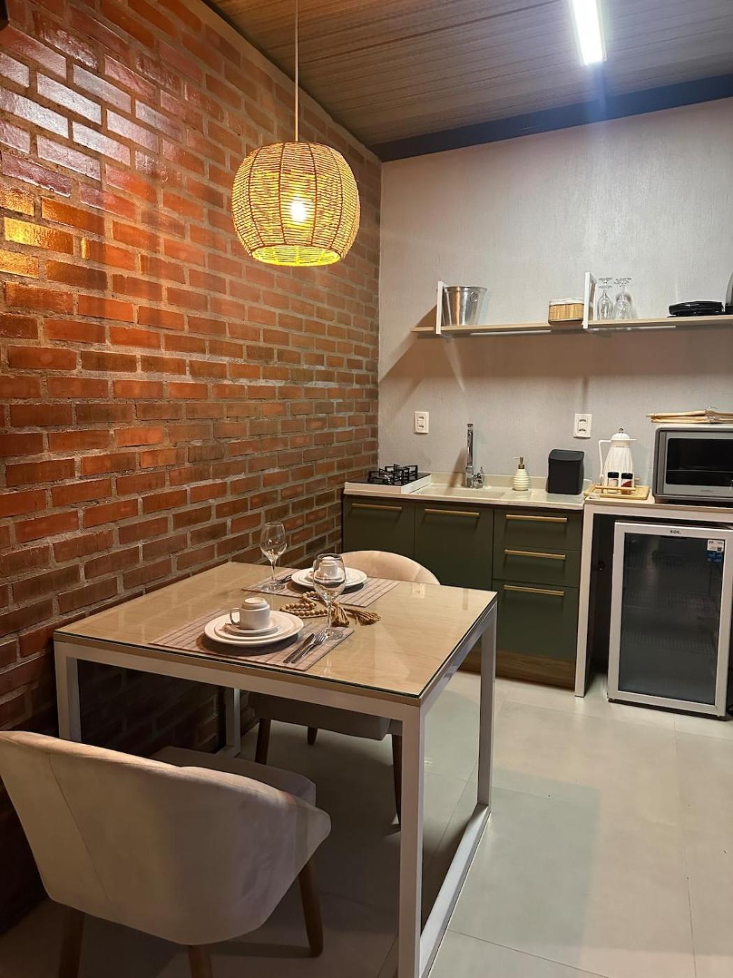 Chalé com 1 Quarto. The hot tub and fireplace are the standout features of this chalet. Guests will find kitchenware, a toaster and an electric kettle in the kitchen. The chalet also comes with a barbecue. Boasting a terrace with garden views, this chalet also features air conditioning and a flat-screen TV. The unit has 1 bed.