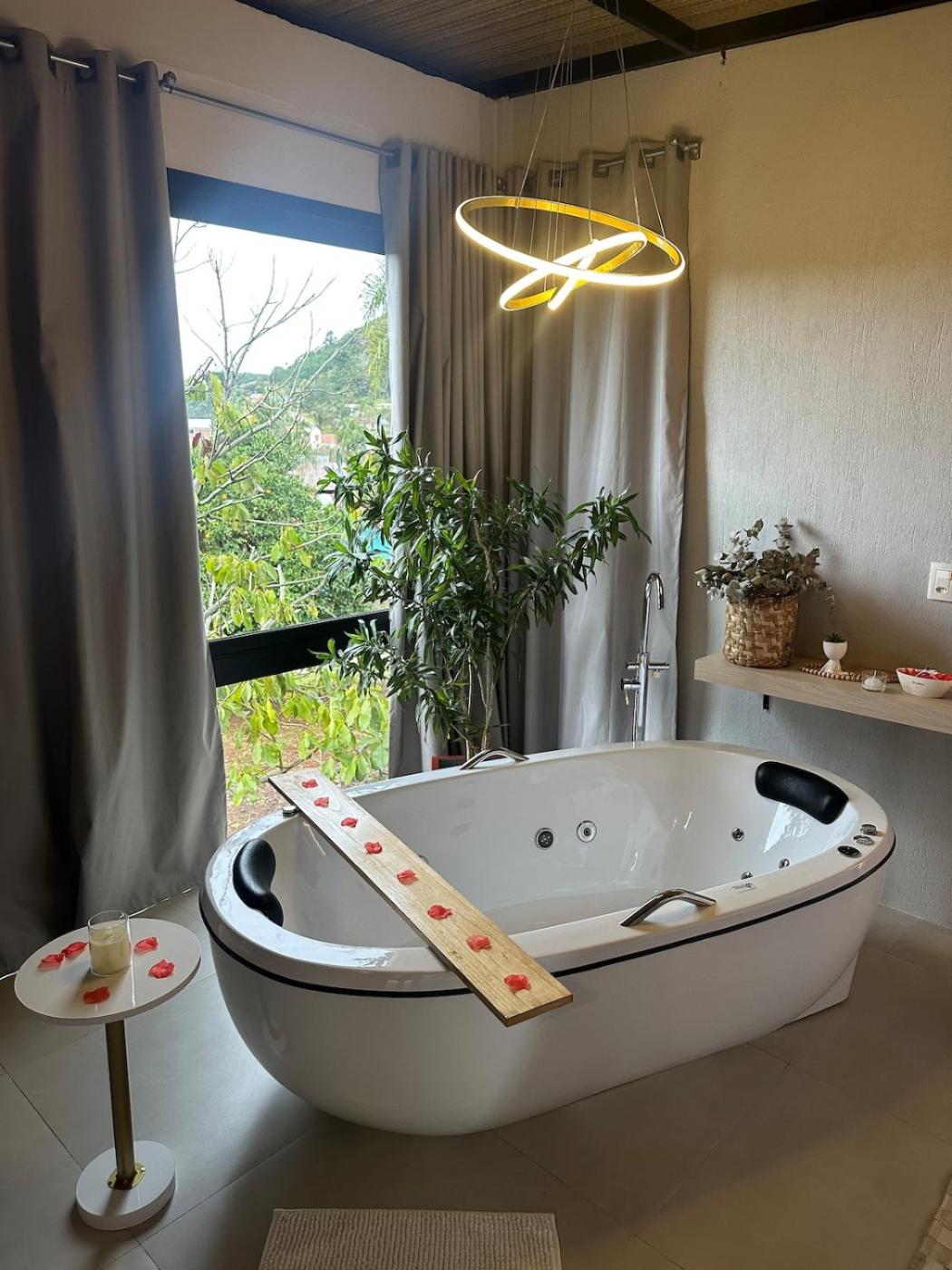 Cabin Dolomita near Gramado with hydro and fireplace possui uma banheira de hidromassagem.