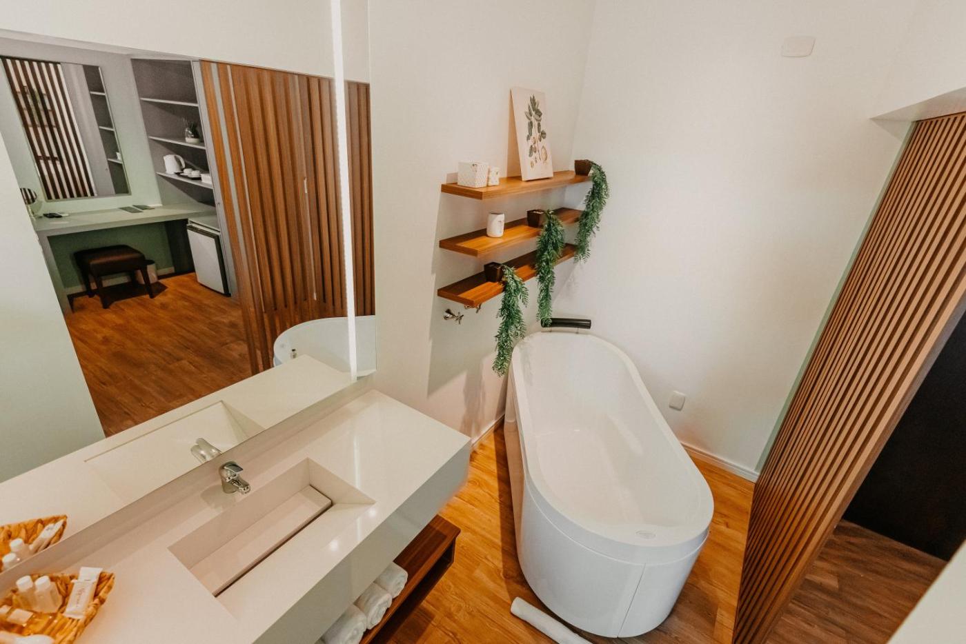 Suite com Banheira de Hidromassagem. Guests will have a special experience as the suite offers a hot tub. The air-conditioned suite features 1 bedroom and 1 bathroom with a bath and a shower. Featuring a patio, this suite also provides a minibar, a seating area and a flat-screen TV with streaming services. The unit offers 1 bed. ;