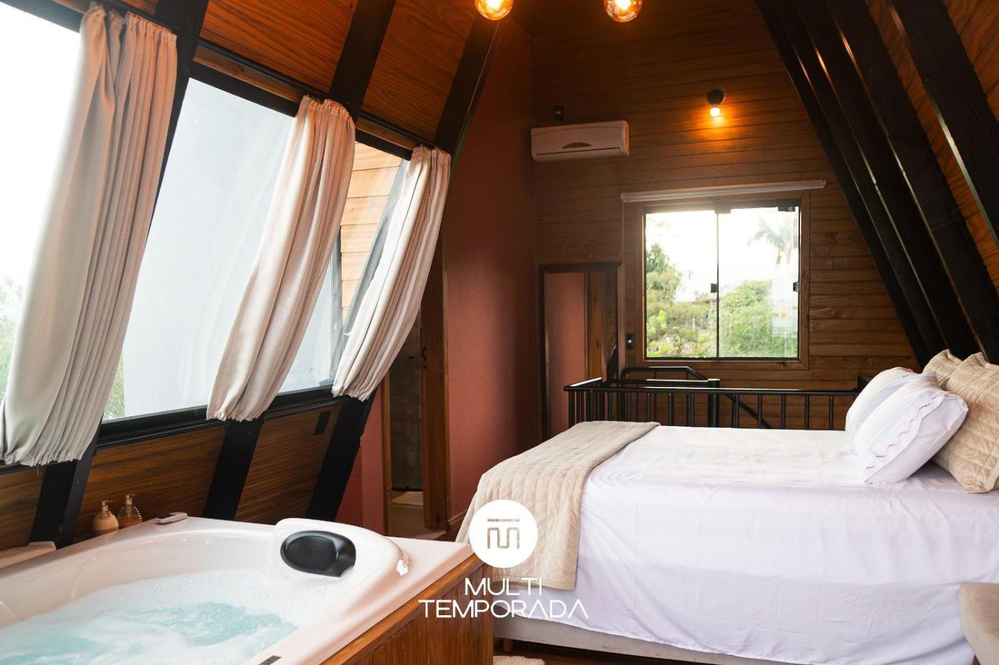 Chalé Superior. The hot tub is the standout feature of this chalet. This air-conditioned chalet comes with 1 living room, 1 separate bedroom and 2 bathrooms with a bath. Guests will find a stovetop, a refrigerator, kitchenware and an oven in the fully equipped kitchen. The chalet also includes a barbecue. Boasting a balcony with lake views, this chalet also features an electric kettle and a flat-screen TV. The unit has 2 beds and 2 futons.