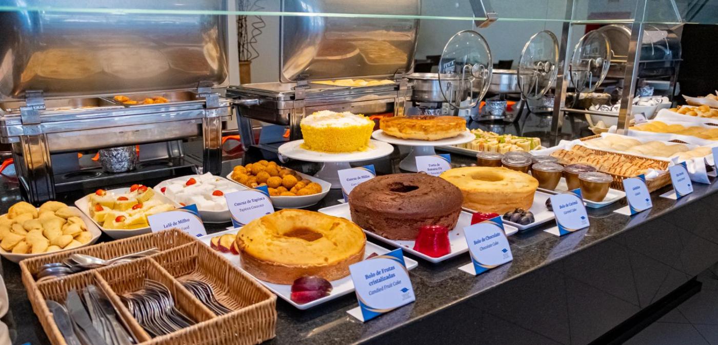 O Grande Hotel da Barra serve um rico buffet de pequeno-almoço com uma seleção variada de pães, produtos de charcutaria e bolos. Estão disponíveis cozinhas internacional e regional no restaurante. O bar serve bebidas refrescantes à beira da piscina exterior.