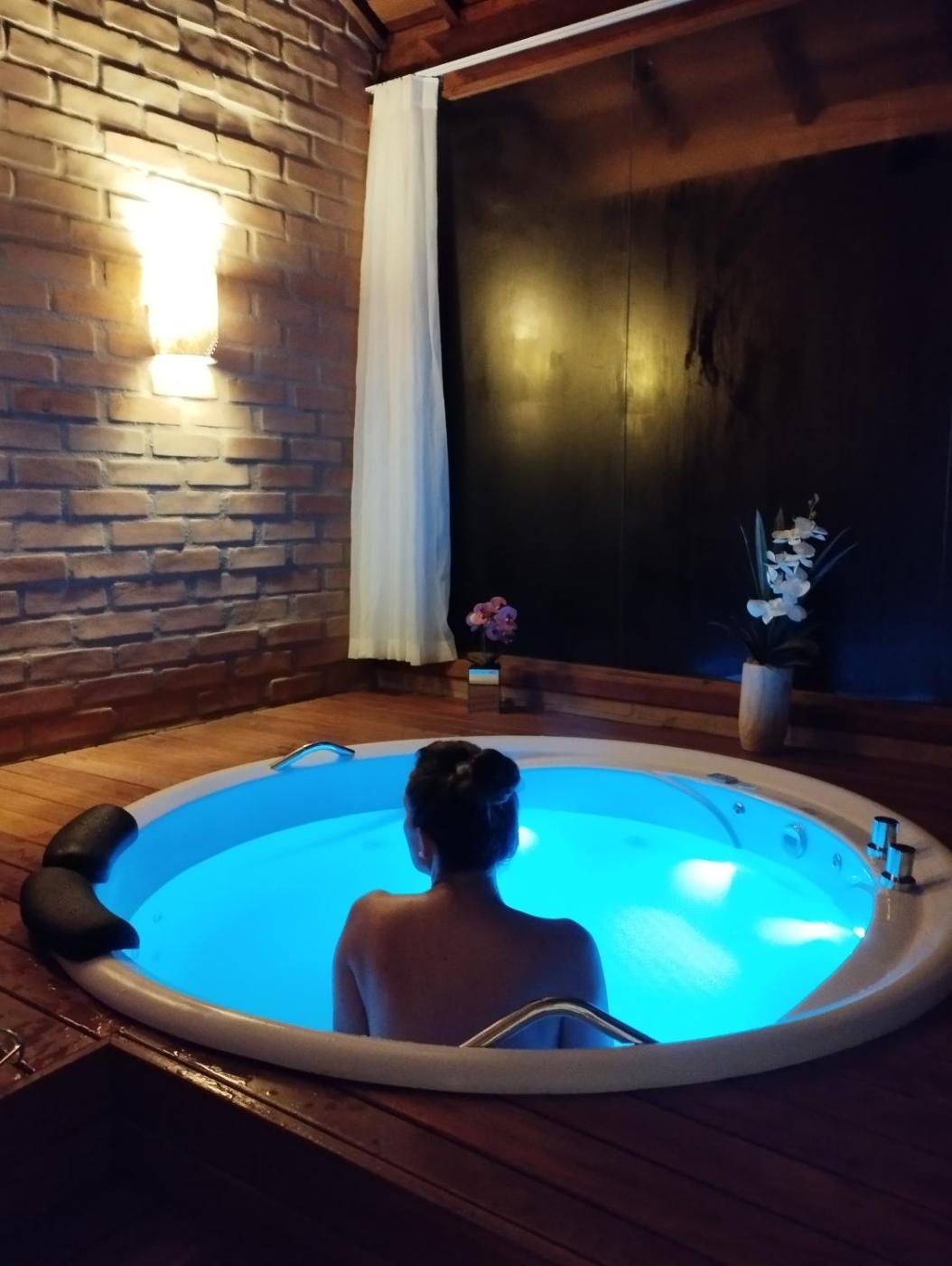 Chalé. The hot tub and fireplace are the special features of this chalet. Boasting a private entrance, this air-conditioned chalet comes with 1 living room, 1 separate bedroom and 1 bathroom with a bath and a shower. Meals can be prepared in the well-fitted kitchen, which features a stovetop, a refrigerator, kitchenware and a microwave. This chalet has a tea and coffee maker, flat-screen TV with cable channels, garden views, as well as chocolate for guests. The unit has 2 beds.