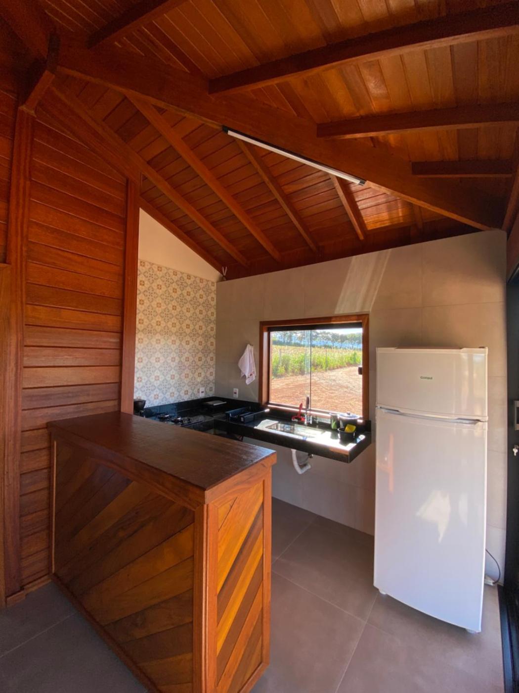 Chalé com 1 Quarto. This air-conditioned chalet consists of 1 living room, 1 separate bedroom and 1 bathroom with a shower. The kitchenette is equipped with a stovetop, a refrigerator and a tea and coffee maker. This chalet provides a flat-screen TV. The unit offers 2 beds. ;
