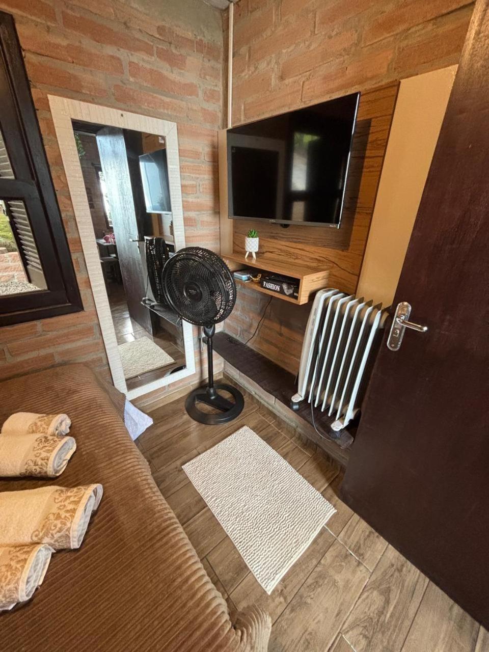 Chalé com 2 Quartos. The fireplace is a top feature of this chalet. The air-conditioned chalet has 2 bedrooms and 1 bathroom with a shower and a hairdryer. Guests will find a stovetop, kitchenware, an oven and a microwave in the fully equipped kitchen. The chalet also features a barbecue. Boasting a balcony with garden views, this chalet also offers a minibar and a flat-screen TV with streaming services. The unit has 2 beds.